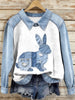 Women's Denim Patchwork Bunny Pattern Sweatshirt